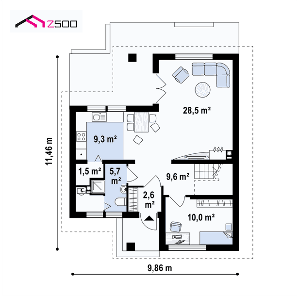 ¡Atención! Las imágenes son informativas, presentan una de las muchas posibilidades de terminar la casa, el interior y el jardín. Muestran la visión arquitectónica del autor, aunque las infografías, se aceran a la realidad.