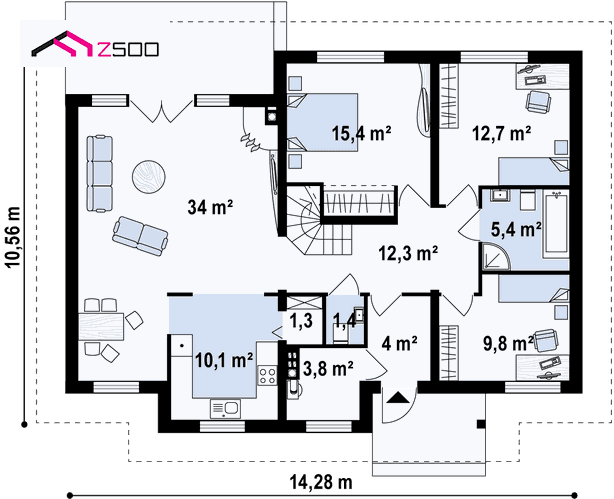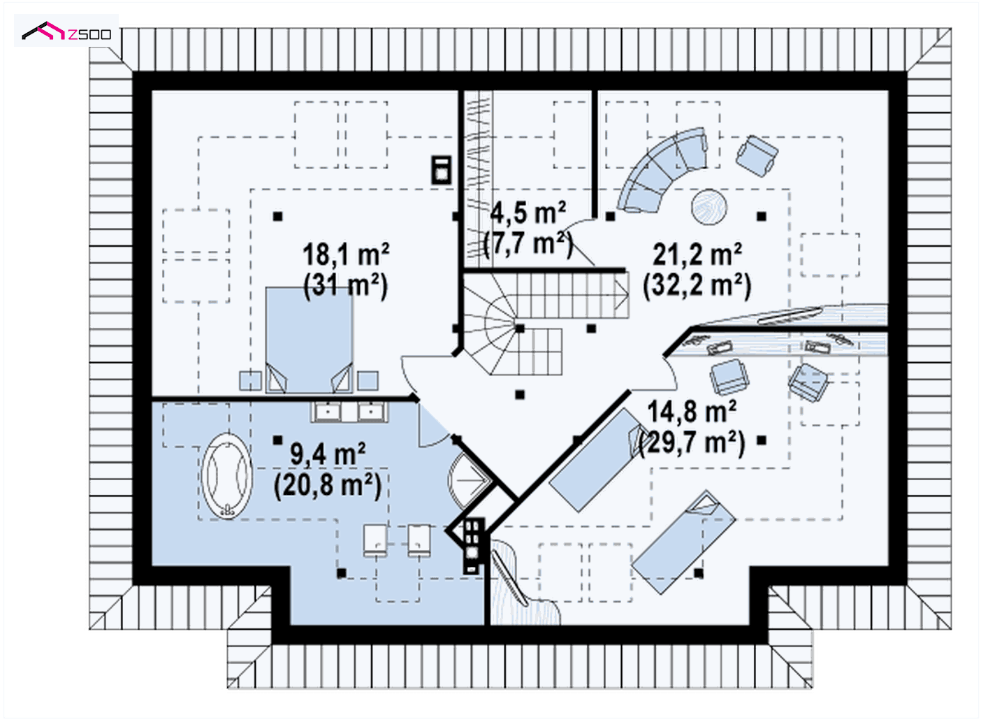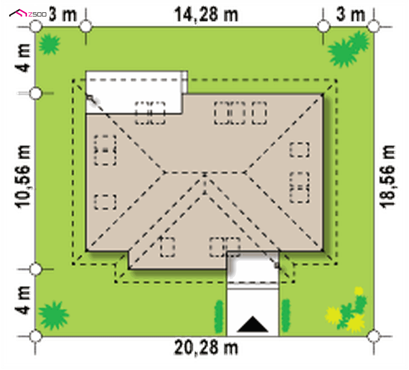 Z83 Jabalon – diseño de casa rústica de dos plantas, con buhardilla y ventanas tipo velux.