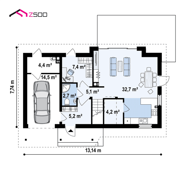 ¡Atención! Las imágenes son informativas, presentan una de las muchas posibilidades de terminar la casa, el interior y el jardín. Muestran la visión arquitectónica del autor, aunque las infografías, se aceran a la realidad.