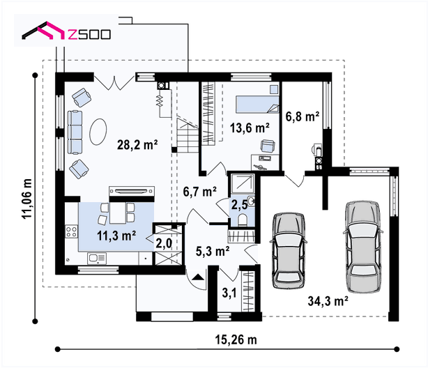 ¡Atención! Las imágenes son informativas, presentan una de las muchas posibilidades de terminar la casa, el interior y el jardín. Muestran la visión arquitectónica del autor, aunque las infografías, se aceran a la realidad.