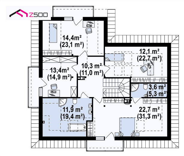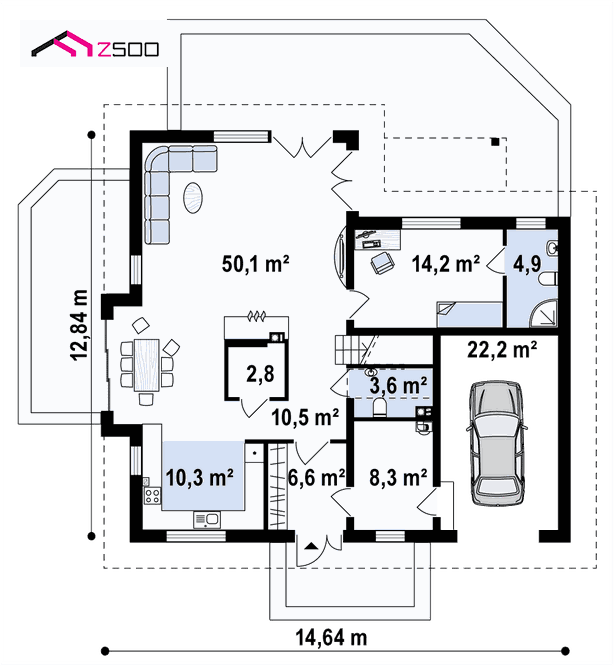 ¡Atención! Las imágenes son informativas, presentan una de las muchas posibilidades de terminar la casa, el interior y el jardín. Muestran la visión arquitectónica del autor, aunque las infografías, se aceran a la realidad.